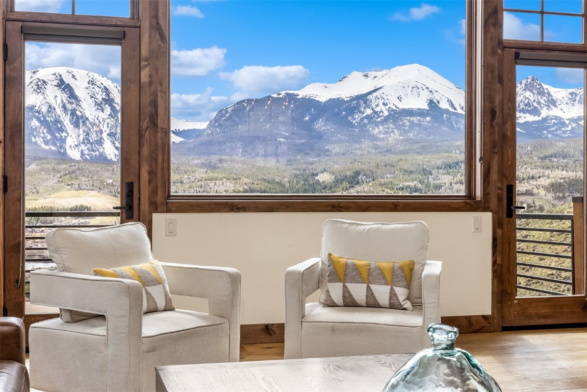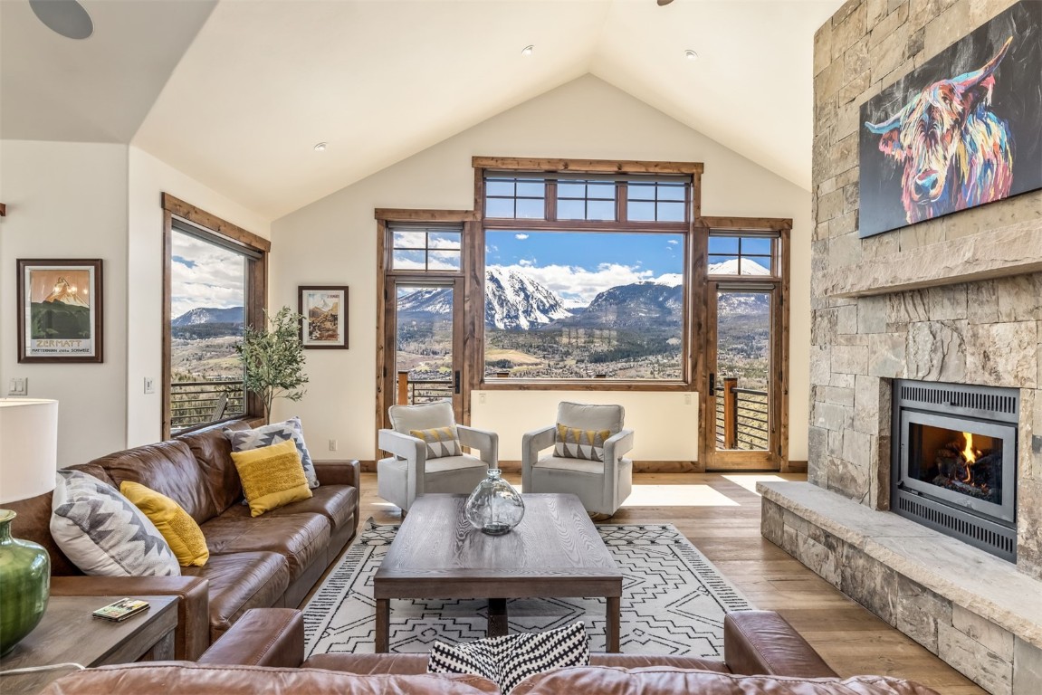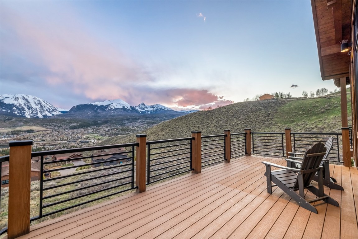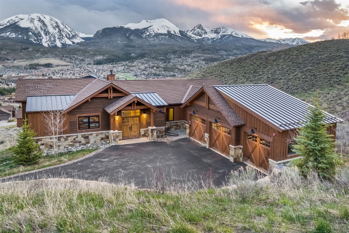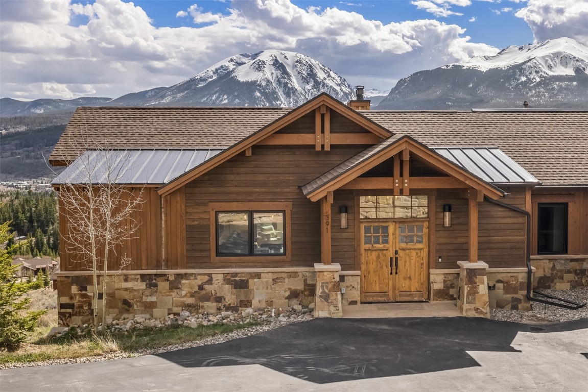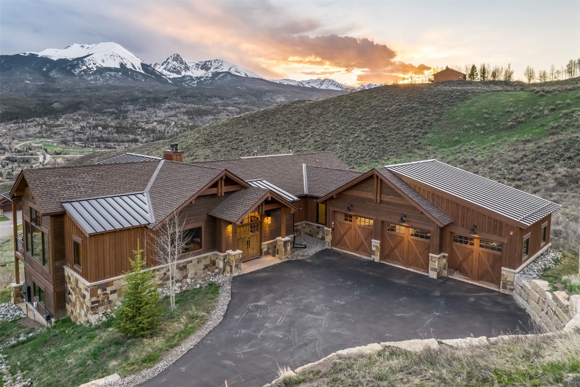 Perched high up the side of Ptarmigan Mountain, enjoying one of the highest homesites in the Town of Silverthorne sits 391 Angler Mountain Ranch Road, a stunning contemporary home that captures endless views of the Gore Range, Ten Mile Range, and far beyond. The long private drive helps separate you from the worries of the world, and welcomes you to your new mountain getaway. Upon entering, be awed by the grandeur of these prized west-facing views, perfectly framed in every window. Modern finishes, such as a large quartz island and stainless Thermador appliances, capture the eye as you seamlessly drift through the kitchen and living room spaces, flowing freely to the dining area and oversized decks. The great room's floor-to-ceiling stone fireplace, and massive windows further enhance the feeling of indoor / outdoor living for which Colorado is so famous. Designed to provide single floor living with the primary bedroom accessed down the hall from the kitchen, and the first guest suite just beyond. Main floor is also entirely handicap / wheelchair accessible. Comfortably entertain more guests on the lower level, with an oversized second living area, additional 3 bedrooms, and private office. And store all the mountain toys you can imagine in the spacious 3 car garage and finished attic storage above. With its convenient access to I-70, and Summit County's multiple world class ski resorts just minutes away, it's easy to see why 391 Angler Mountain Ranch Road should be your new dream escape into the mountains.