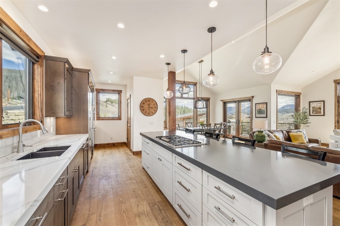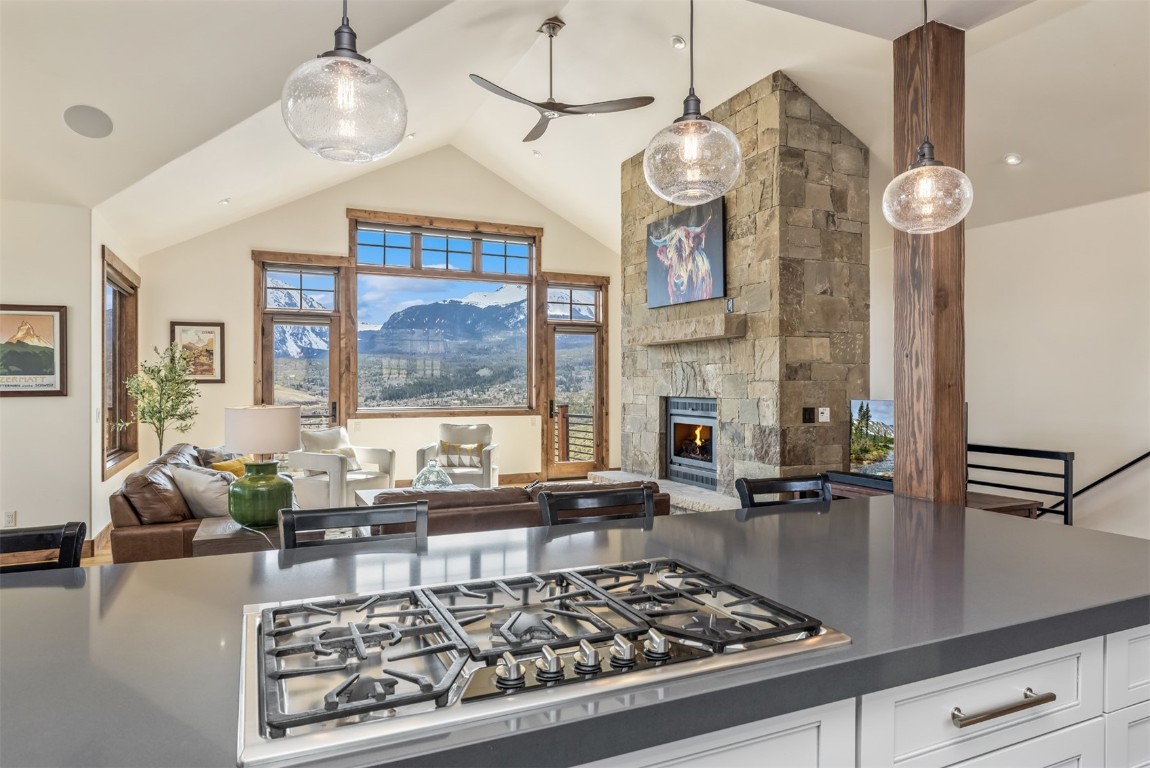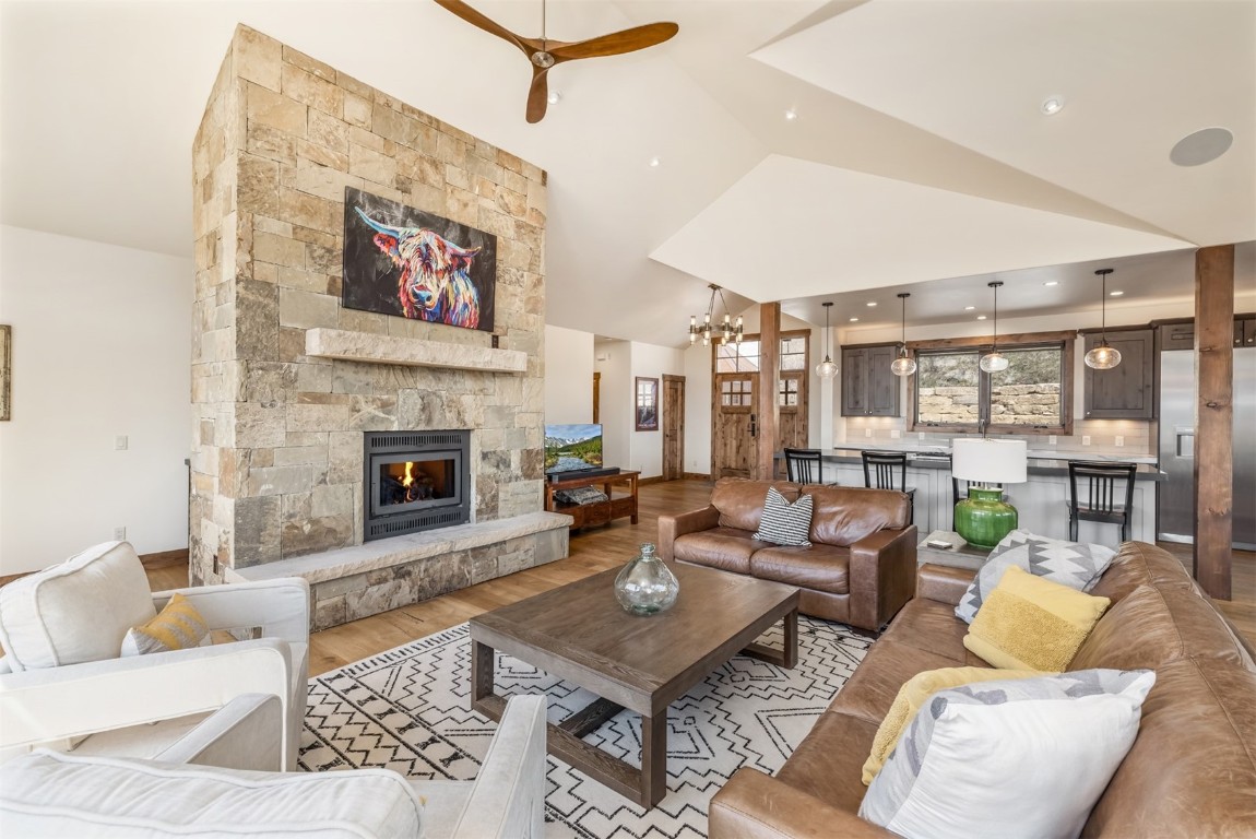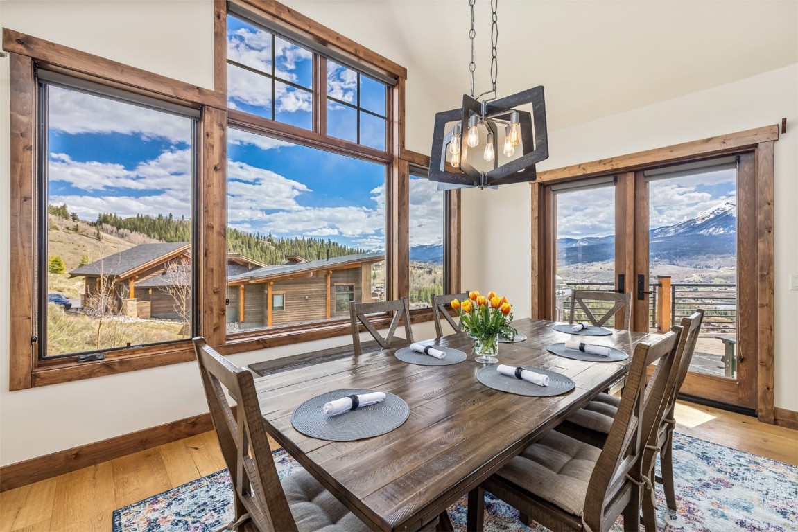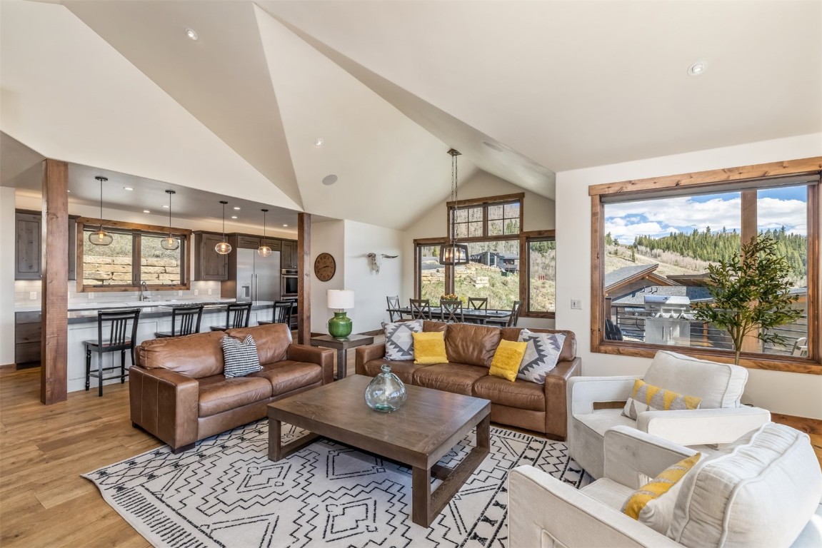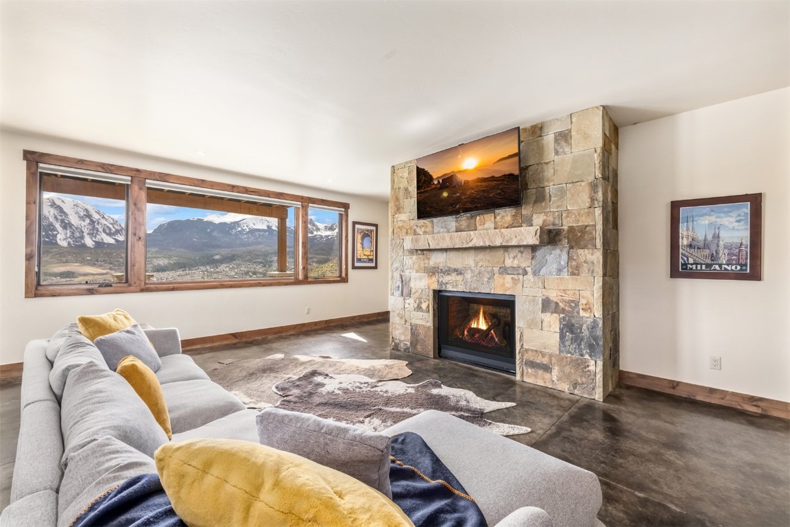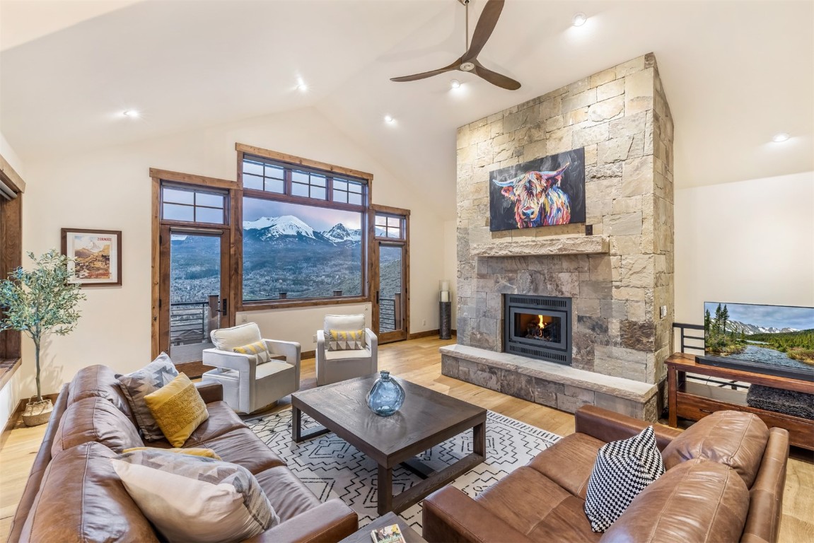 Perched high up the side of Ptarmigan Mountain, enjoying one of the highest homesites in the Town of Silverthorne sits 391 Angler Mountain Ranch Road, a stunning contemporary home that captures endless views of the Gore Range, Ten Mile Range, and far beyond. The long private drive helps separate you from the worries of the world, and welcomes you to your new mountain getaway. Upon entering, be awed by the grandeur of these prized west-facing views, perfectly framed in every window. Modern finishes, such as a large quartz island and stainless Thermador appliances, capture the eye as you seamlessly drift through the kitchen and living room spaces, flowing freely to the dining area and oversized decks. The great room's floor-to-ceiling stone fireplace, and massive windows further enhance the feeling of indoor / outdoor living for which Colorado is so famous. Designed to provide single floor living with the primary bedroom accessed down the hall from the kitchen, and the first guest suite just beyond. Main floor is also entirely handicap / wheelchair accessible. Comfortably entertain more guests on the lower level, with an oversized second living area, additional 3 bedrooms, and private office. And store all the mountain toys you can imagine in the spacious 3 car garage and finished attic storage above. With its convenient access to I-70, and Summit County's multiple world class ski resorts just minutes away, it's easy to see why 391 Angler Mountain Ranch Road should be your new dream escape into the mountains.