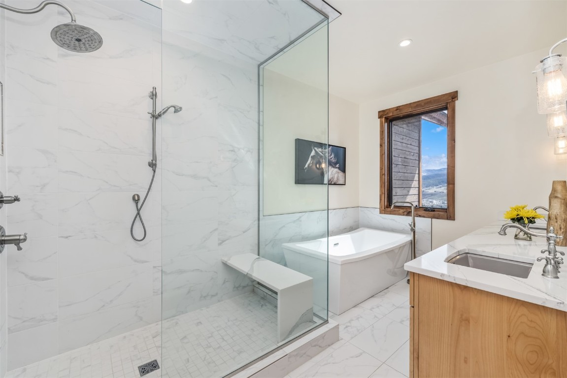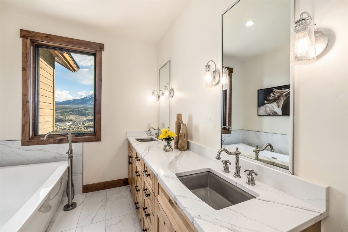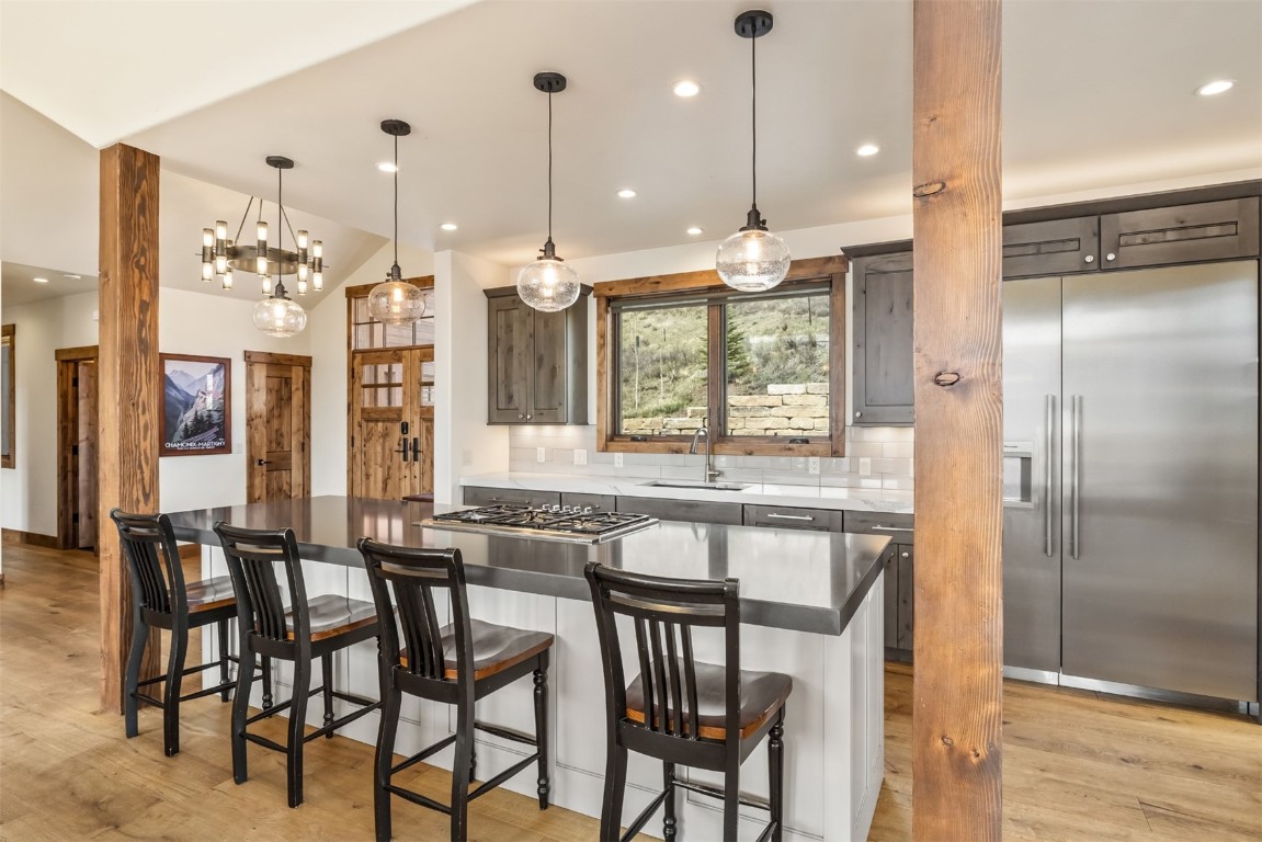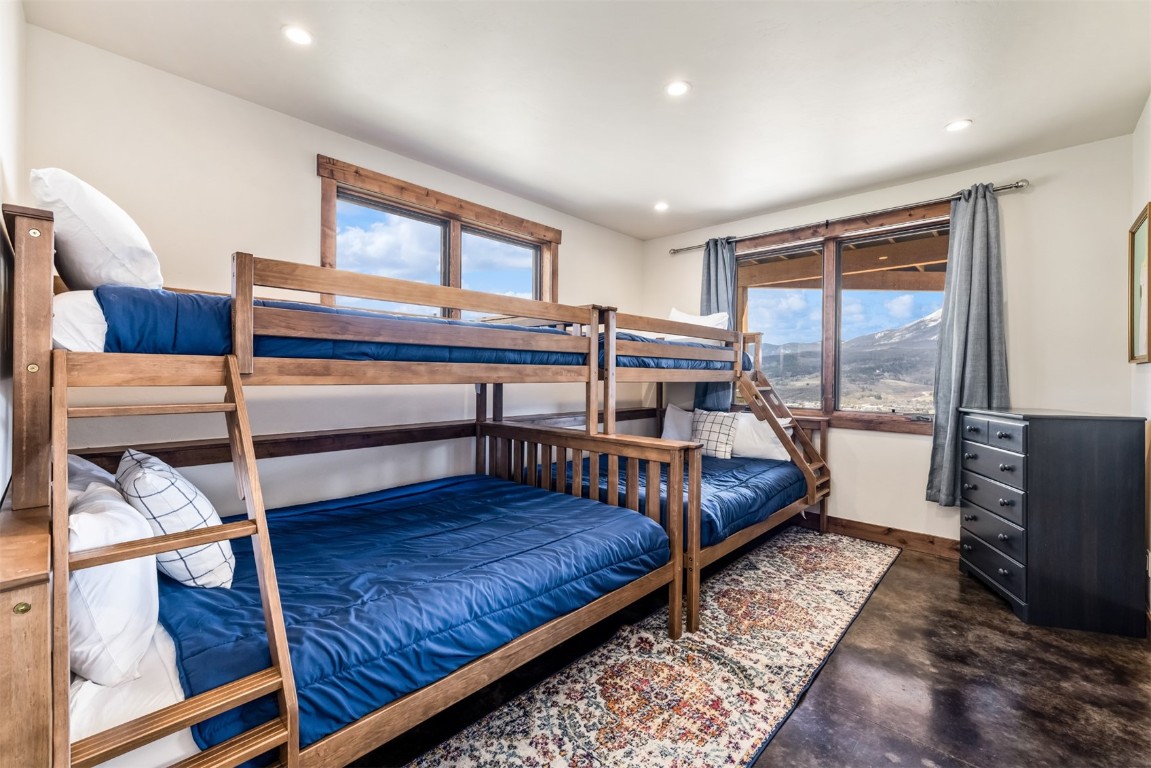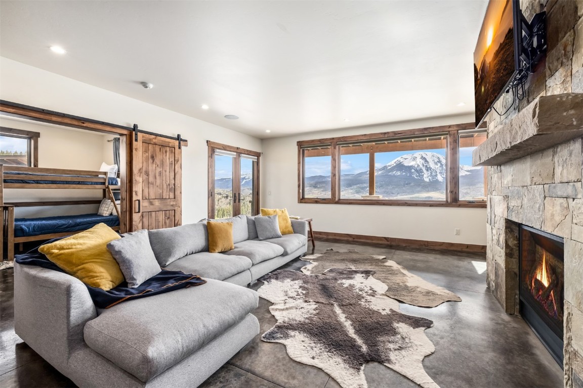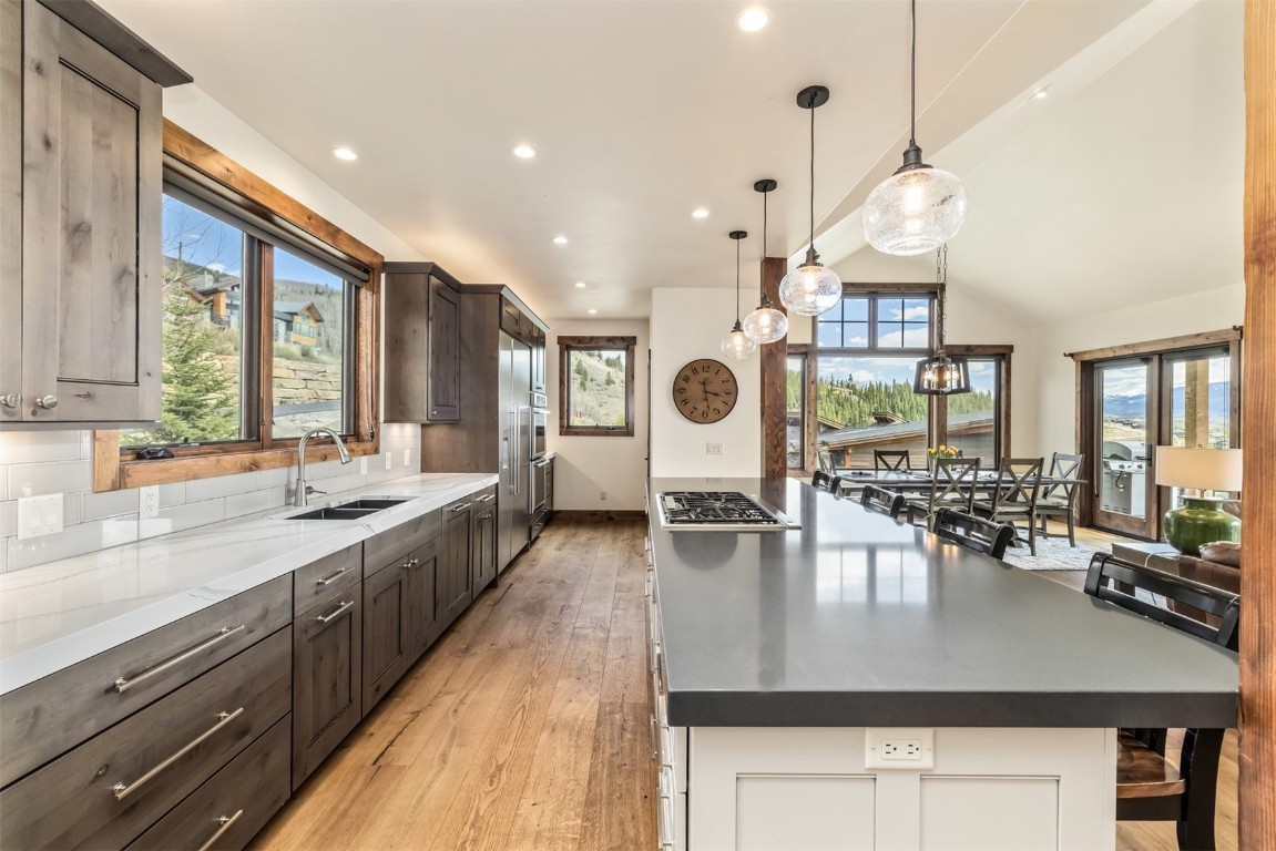 Perched high up the side of Ptarmigan Mountain, enjoying one of the highest homesites in the Town of Silverthorne sits 391 Angler Mountain Ranch Road, a stunning contemporary home that captures endless views of the Gore Range, Ten Mile Range, and far beyond. The long private drive helps separate you from the worries of the world, and welcomes you to your new mountain getaway. Upon entering, be awed by the grandeur of these prized west-facing views, perfectly framed in every window. Modern finishes, such as a large quartz island and stainless Thermador appliances, capture the eye as you seamlessly drift through the kitchen and living room spaces, flowing freely to the dining area and oversized decks. The great room's floor-to-ceiling stone fireplace, and massive windows further enhance the feeling of indoor / outdoor living for which Colorado is so famous. Designed to provide single floor living with the primary bedroom accessed down the hall from the kitchen, and the first guest suite just beyond. Main floor is also entirely handicap / wheelchair accessible. Comfortably entertain more guests on the lower level, with an oversized second living area, additional 3 bedrooms, and private office. And store all the mountain toys you can imagine in the spacious 3 car garage and finished attic storage above. With its convenient access to I-70, and Summit County's multiple world class ski resorts just minutes away, it's easy to see why 391 Angler Mountain Ranch Road should be your new dream escape into the mountains.